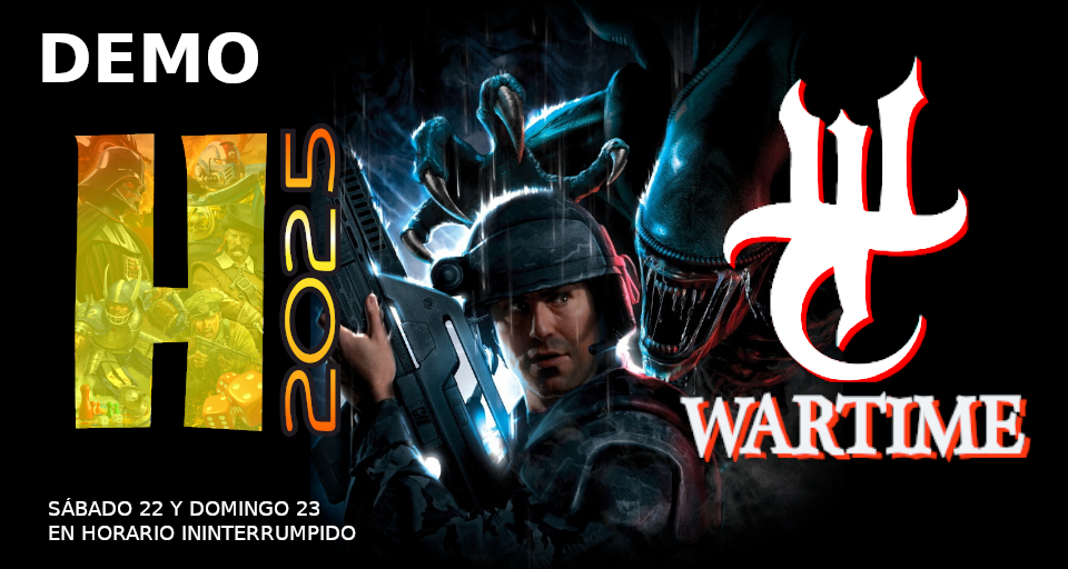Wartime es un juego de miniaturas gratuito, agnóstico y multi escalar, para que juegues con todas las miniaturas que tengas por casa. En Wartime se explica cómo crear los perfiles de las miniaturas, a tu gusto. En la demo, probaréis Wartime con las miniaturas de Alien de GF9 (https://www.gf9games.com/aliens/).