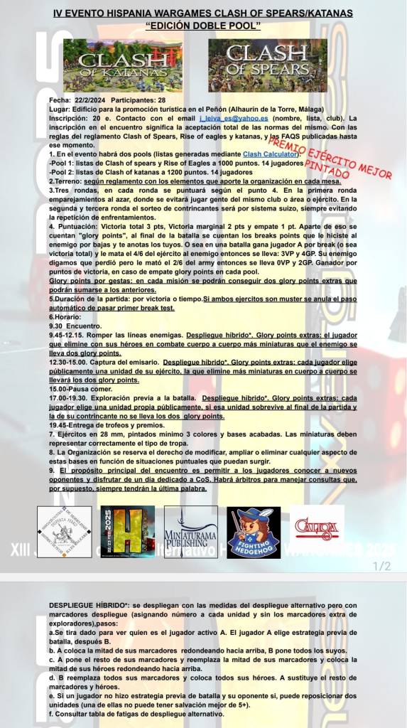 - Nombre del torneo:IV Evento Clash of spears/katanas Hispania wargames 2025